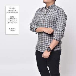 distributor Kemeja Flanel Planel Pria Murah Wasses Hitam Abu-abu Keren Lelaki Cowo - M